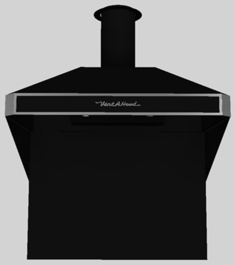 Click on the models for a list of our base model numbers for standard sizes; simply select the model you need, and then specify the finish. Available in standard and custom paint finishes (additional charges may apply). Recommended mounting height is 33" above the cooking surface. Two side wing panels and a splash panel 30" tall x the width of the hood are included; the painted round duct and ceiling collar are sold separately. All Vent-A-Hood products are suitable for use in damp locations (outdoor applications such as a covered patio) when installed in a GFCI protected branch circuit.